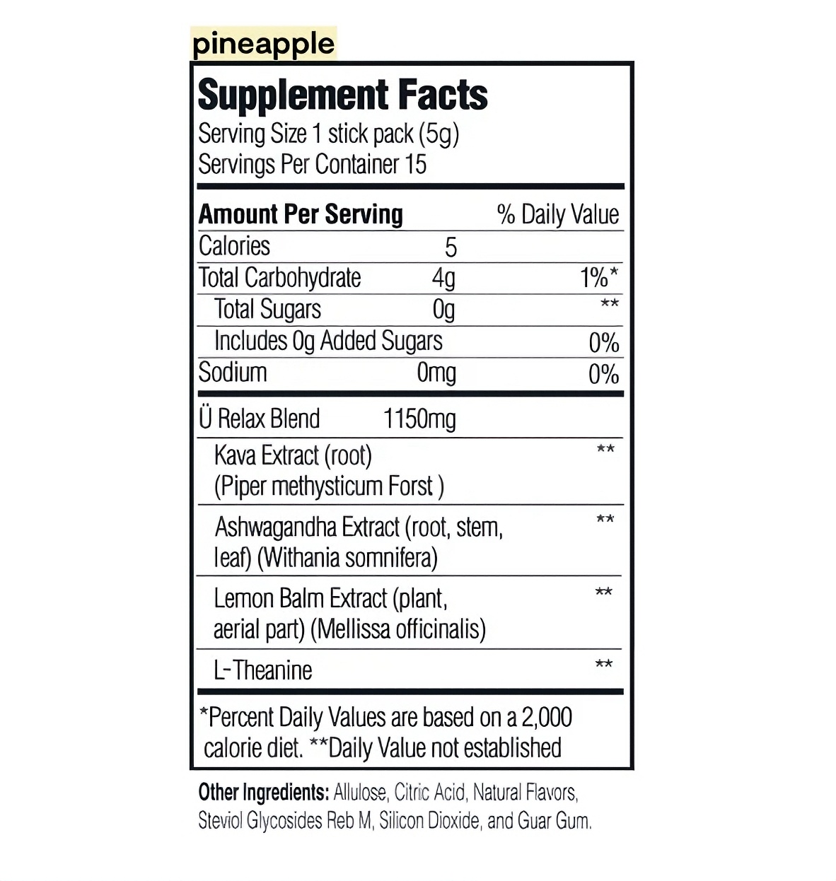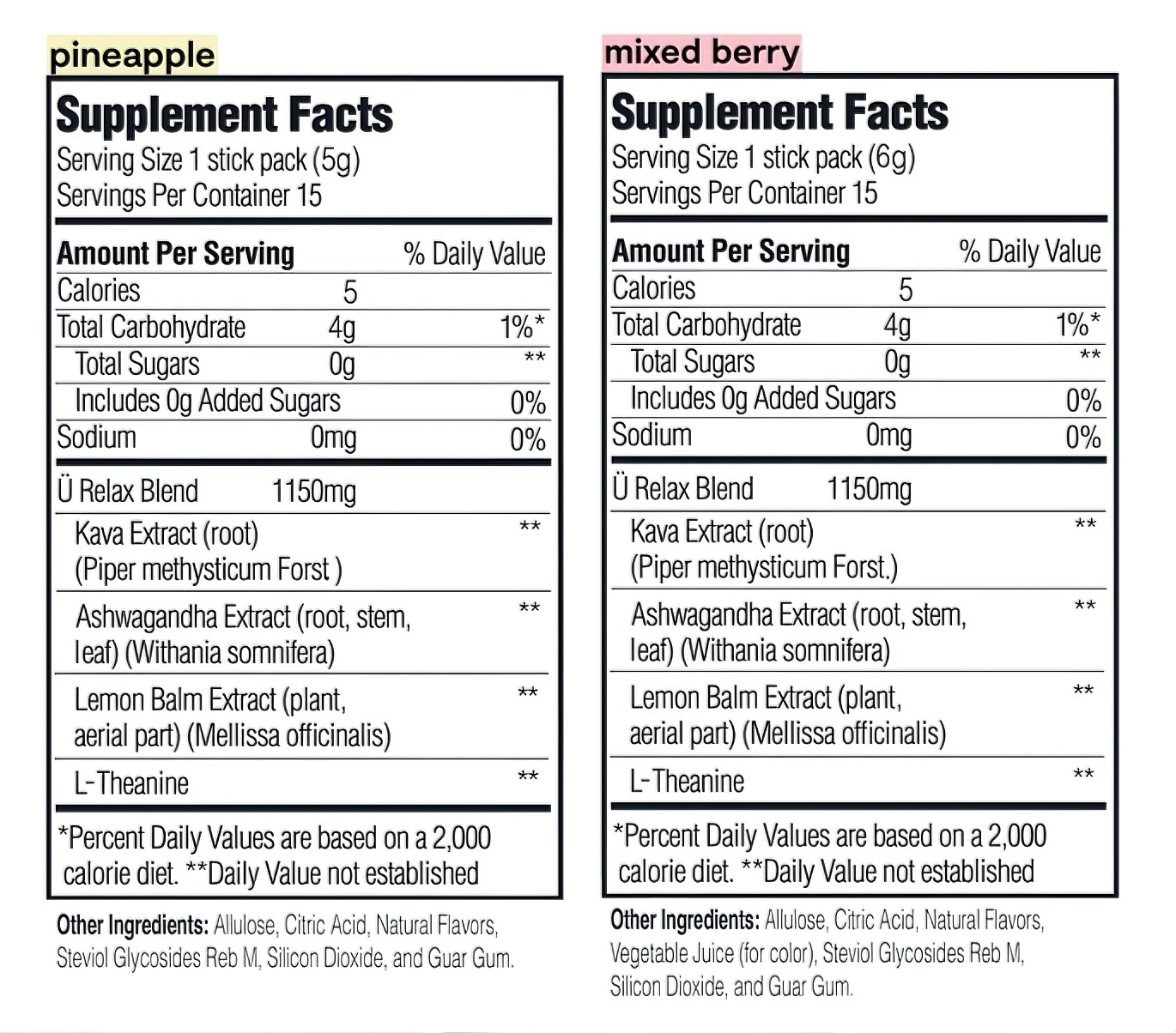 Ü Relax is sugar-free and naturally sweetened with Allulose and Reb M Stevia extract. We’ll never use any artificial colors, flavors, or sweeteners.